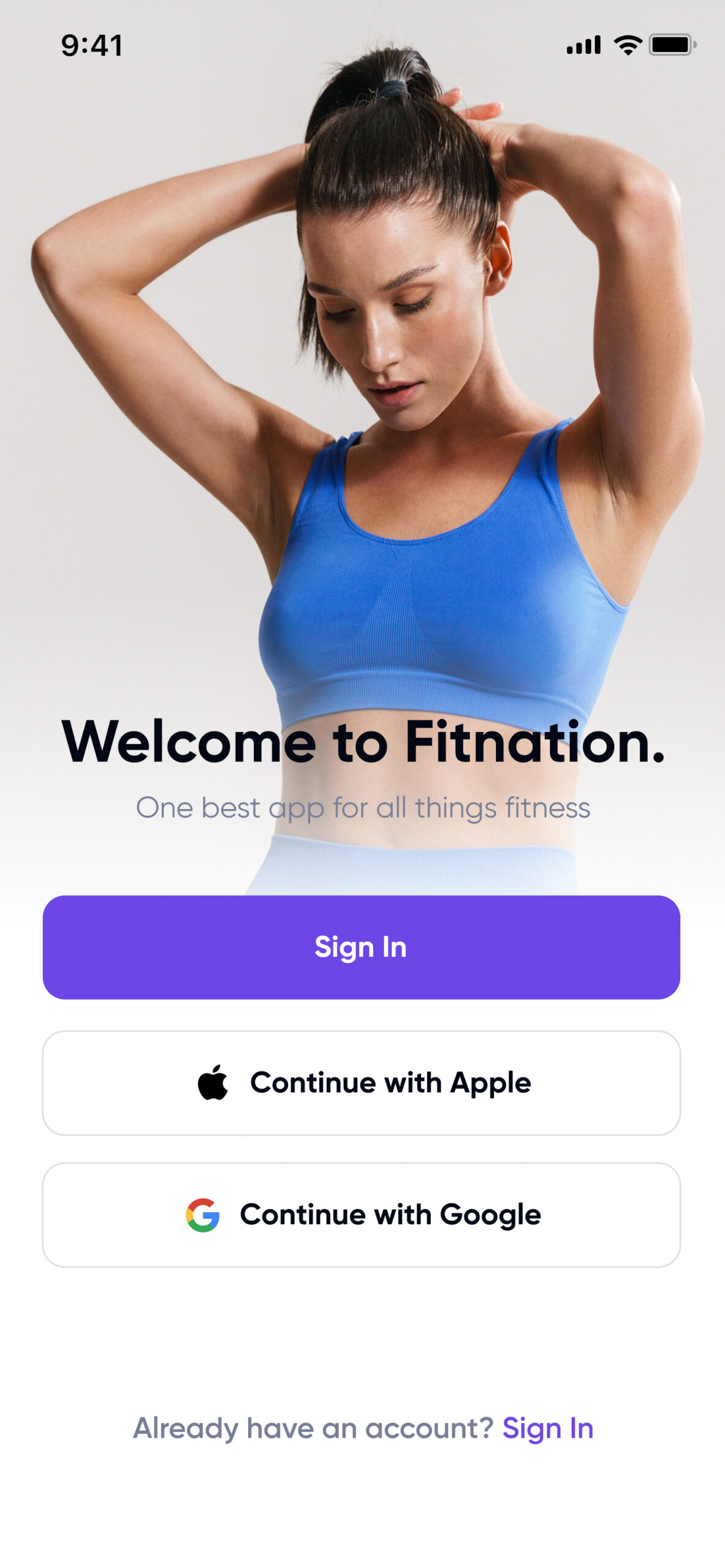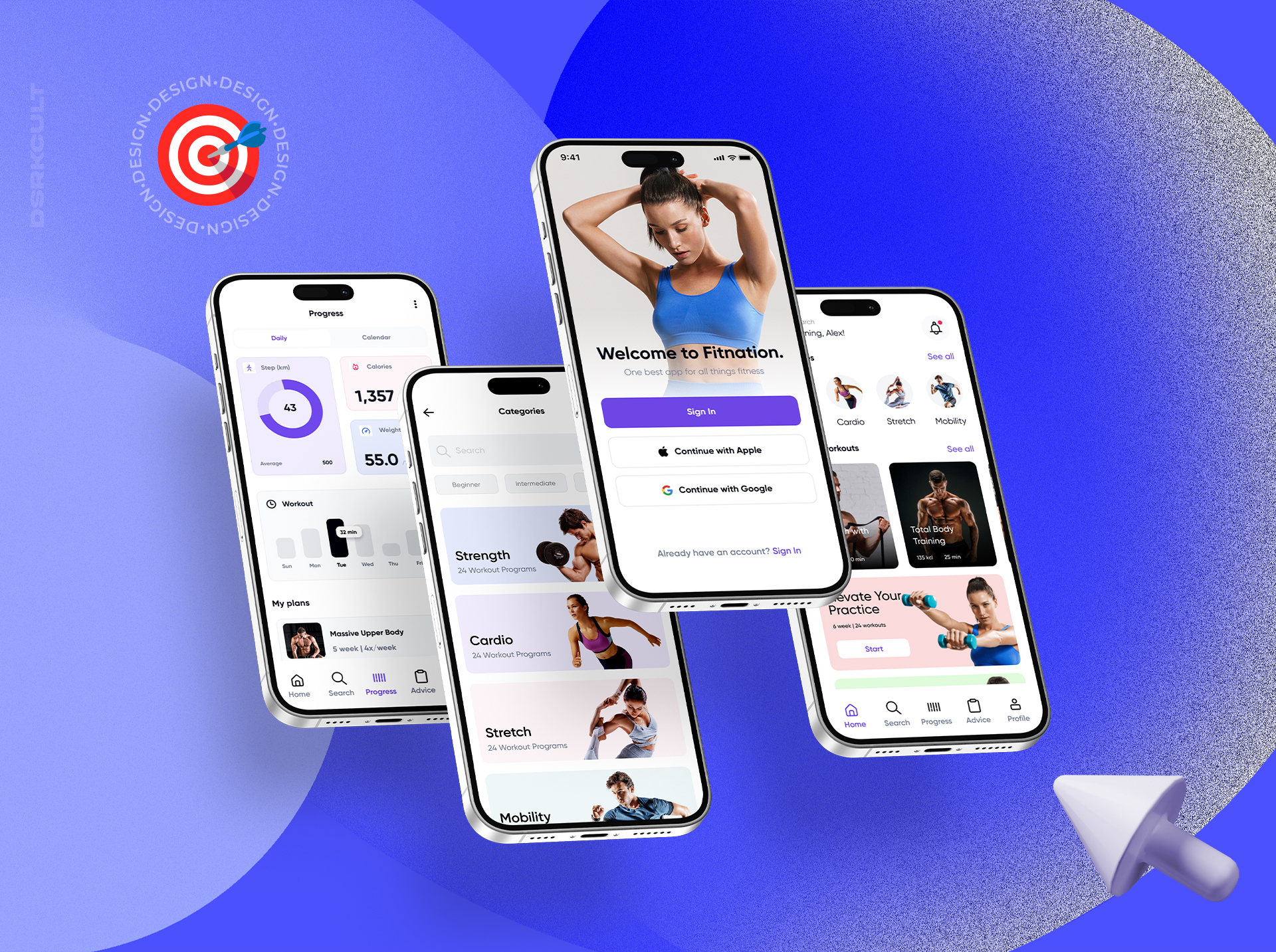 UX/UI дизайн приложения Fitnation для занятия фитнесом.