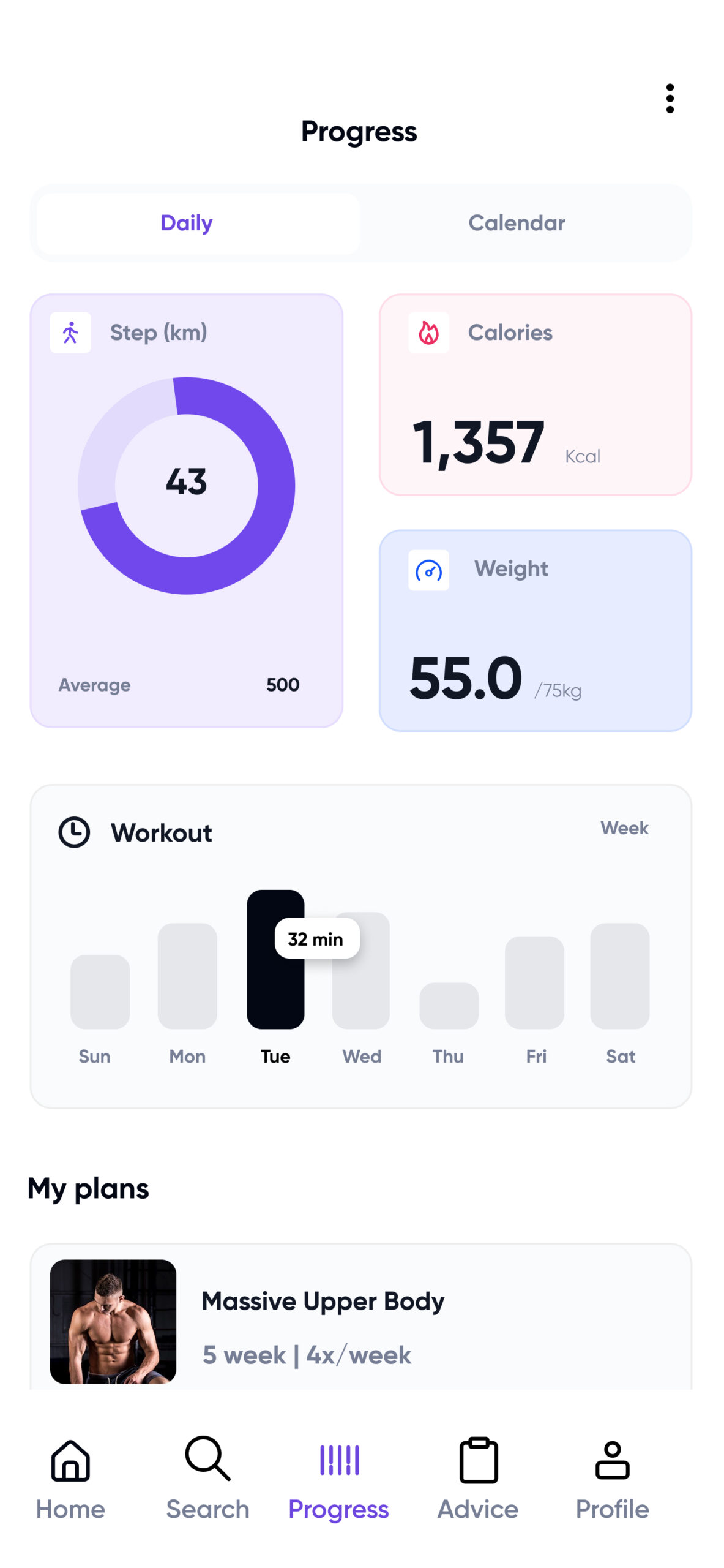 Отслеживать калории и вес — встроенные инструменты позволяют вести учёт питания и наблюдать за изменениями веса, чтобы контролировать результат.